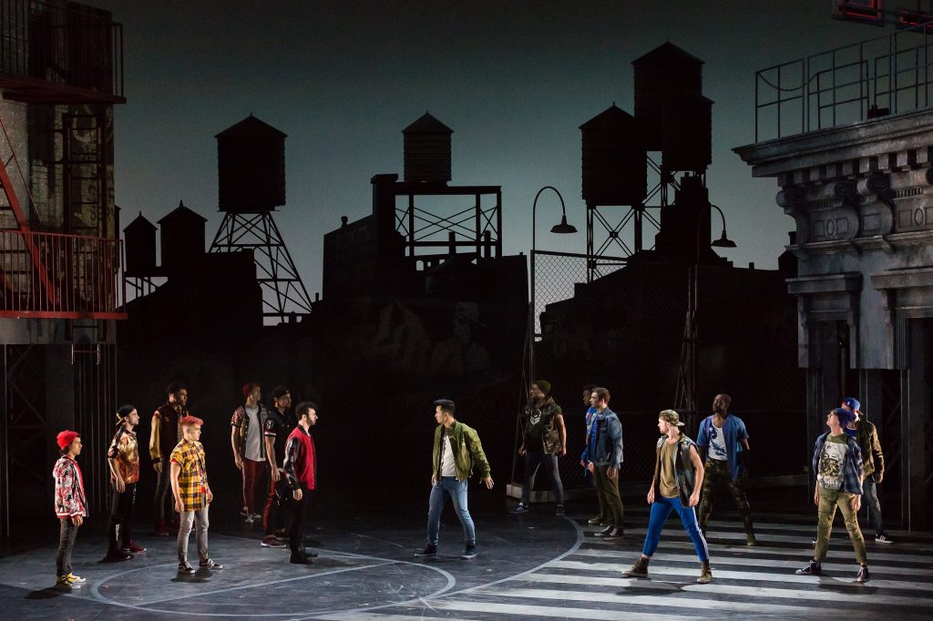 The opening is a carefully choreographed, half-danced/half-mimed ballet of sorts. It shows the growing tensions between the Sharks, a Puerto Rican gang, and the Jets, a gang made up of “American” boys. An incident between the Jets and Shark leader, Bernardo, escalates into an all out fight between the two gangs. Officers Schrank and Krupke arrive to break up the fight.